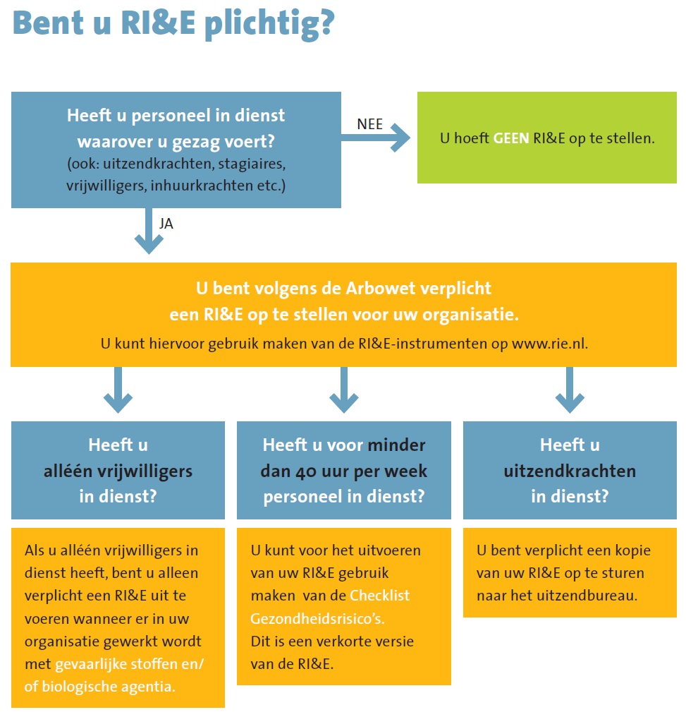 Met behulp van dit stroomschema kunt u bepalen of ook ú volgens de Arbowet verplicht bent een RI&E uit te voeren.